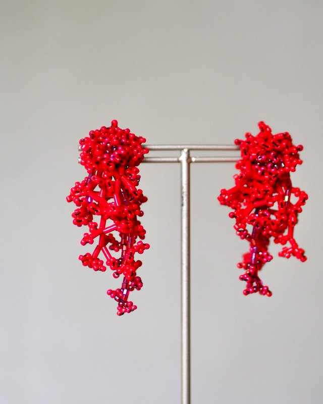 botanical beads series ✳︎ 05 Botanical – Red 季節が深まると、ふと身につけたくなる“赤いもの”。 こちらは、そんな気分に甘さを抑えた大人の赤が、装いにアクセントを添えます。 赤は、理想のトーンを見つけるのが本当にむずかしい色。 ほんのわずかな差で、印象ががらりと変わります。 この赤は、私にとっての“理想の赤”。 出会ったイタリアンレッドのデッドストックビーズを、 ひと粒ひと粒、丁寧に編み上げました。 極小ビーズをビーズ専用の強化糸で編み、 立体感とほどよいボリュームを持たせました。 植物のフォルムのような軽やかなシルエットに、 小さなガラスビーズの揺れが加わり、 上品さと可愛らしさが絶妙なバランスで寄り添います。 ボリュームはありながら、負担の少ない軽やかな耳飾りです。 ⸻ 〈サイズ〉 • 全長:約 6-7cm • 横幅:約 2.5cm • 厚み:約 1cm ※ハンドメイドのため、わずかな個体差があります。 ⸻ 〈素材〉 • 極小メタリックビーズ • ガラスビーズ • メタルパーツ • ビーズ糸 • ピアス:真鍮にメッキ(アレルギー対応チタンポストをご希望の方はご連絡ください) • イヤリング:ネジバネ式 ⸻ 〈ギフト対応〉 ギフトラッピングを施し、丁寧に発送いたします。 (パッケージデザインは予告なく変更となる場合がございます) ⸻ 〈価格・送料〉 • 表示価格は 消費税込み • 送料は別途発生 いたします • ¥10,000以上のお買い上げで送料無料 ⸻ 〈発送について〉 • 通常配送品:ご注文後 3〜5日以内 に発送 (混雑状況により前後する場合がございます) • 土日祝の発送はお休み です ⸻ 〈納品書・領収書〉 納品書・領収書は同封しておりません。 必要な方は備考欄にご記入いただくか、ご購入後にコンタクトよりご連絡ください。