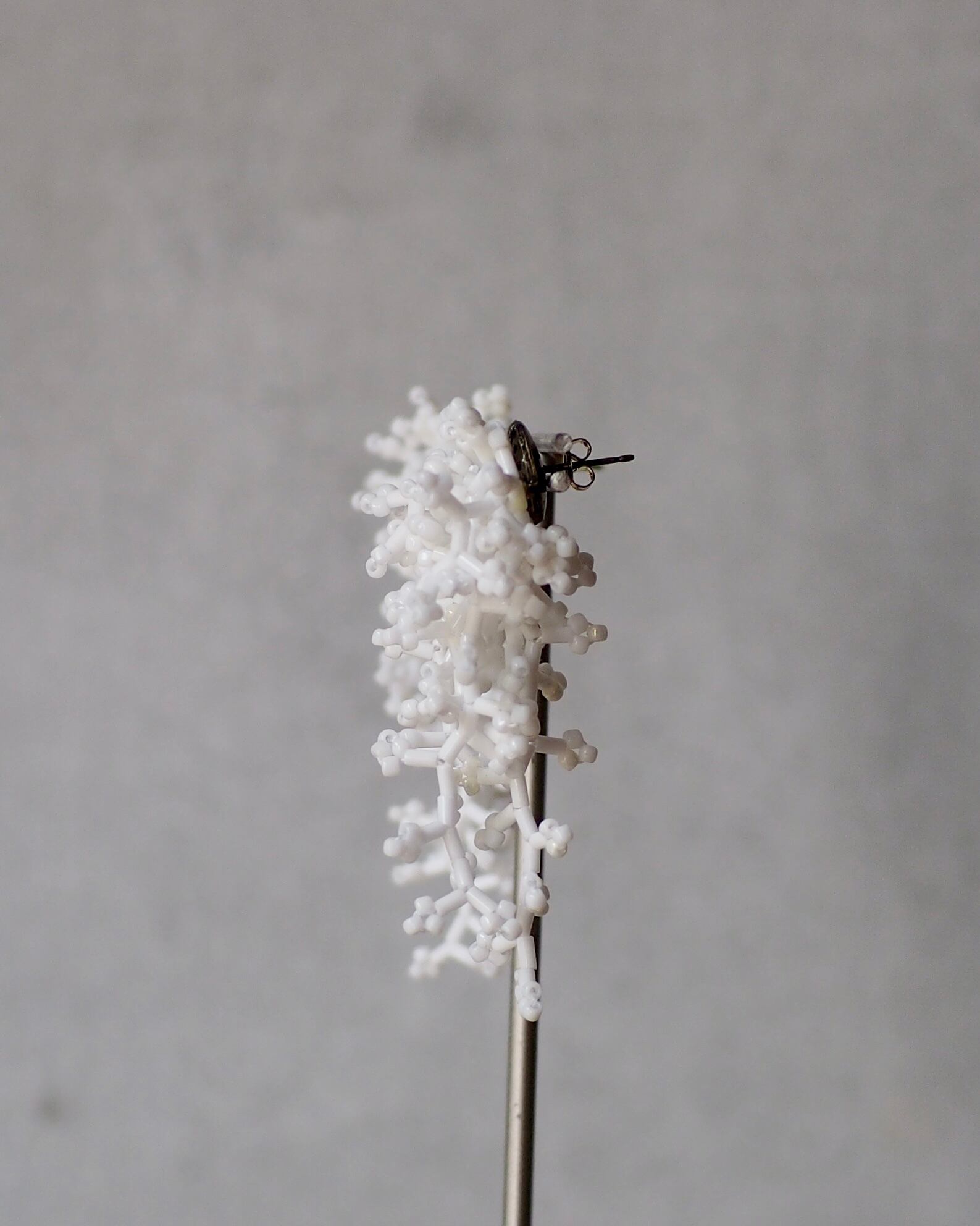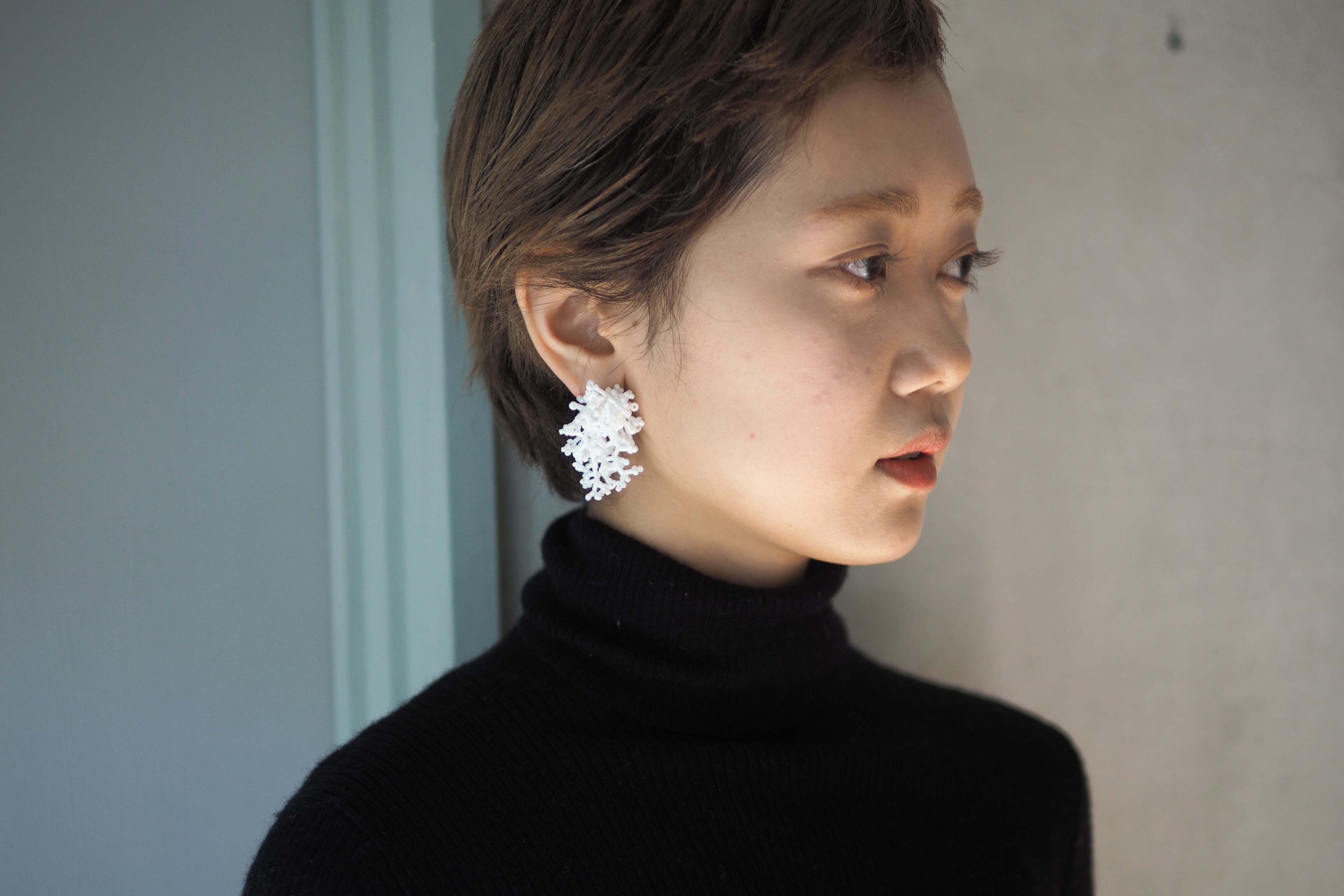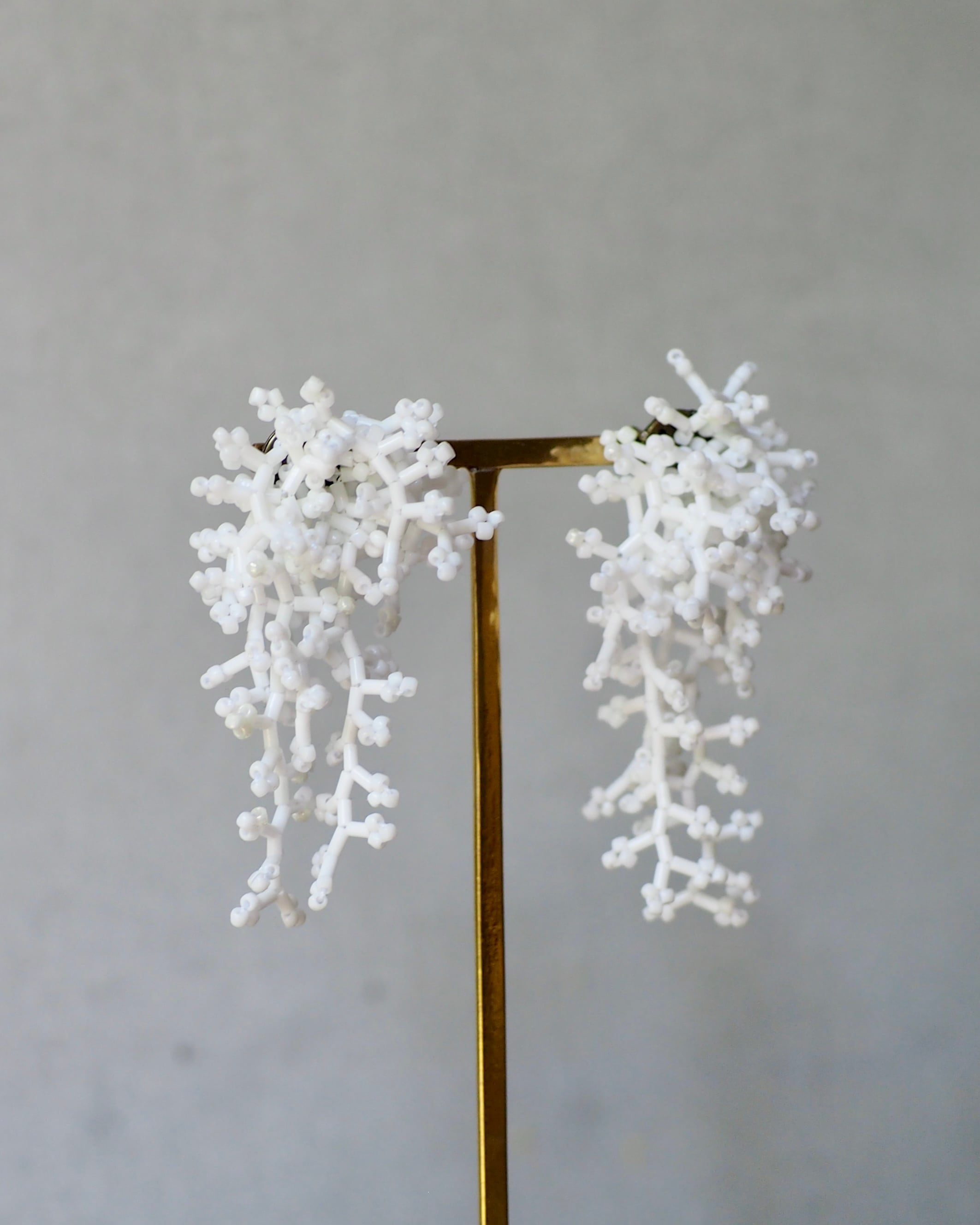 透け感のないマットなビーズは、白さが際立ち、繊細さとモダンな表情を宿します。