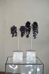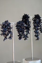 マットブラックに、ほんのりと玉虫色の光がにじむビーズを組み合わせ、